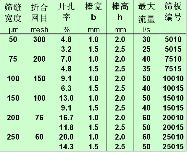 四、篩柵縫寬尺寸規(guī)格對應(yīng)過濾目數(shù):