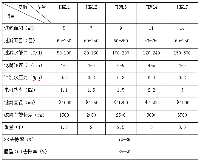 JHWL系列微濾機(jī)適合于各種工業(yè)廢水的固液分離,可以去除水中直徑0.15mm以上的細(xì)小顆粒。適合于造紙、制革、皮草加工、屠宰、釀酒、印染、紡織、化工等污水處理的預(yù)處理,尤其適用于造紙白水的處理,達(dá)到封閉循環(huán)重復(fù)使用。